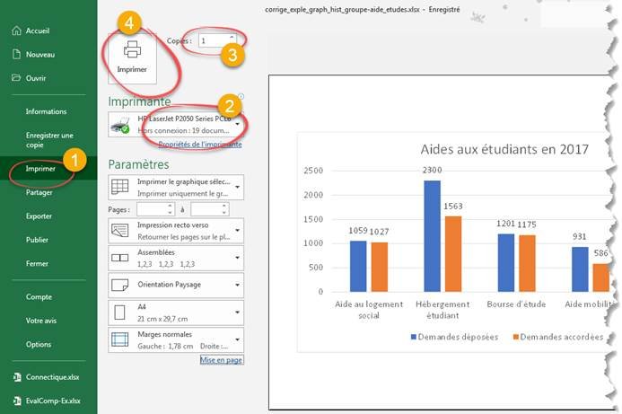 1. Sélectionner le graphique puis dans Fichier > Cliquer sur Imprimer