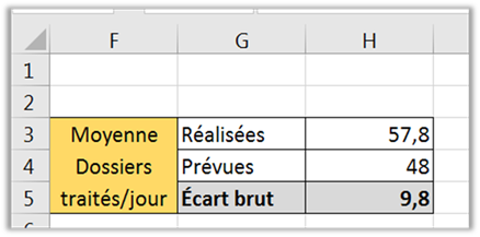 quelques calculs vous trouvez une moyenne de 57,8 dossiers traités