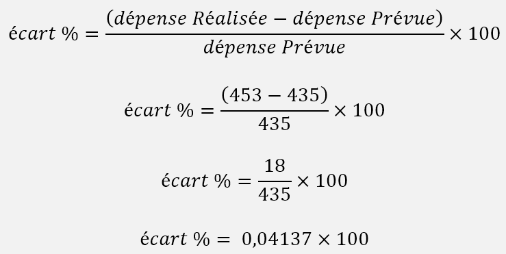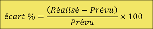 - Ici un écart positif signifie que nous avons dépassé le budget prévu.
