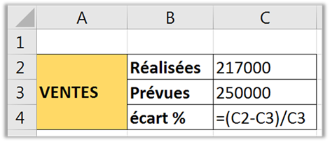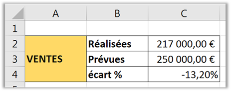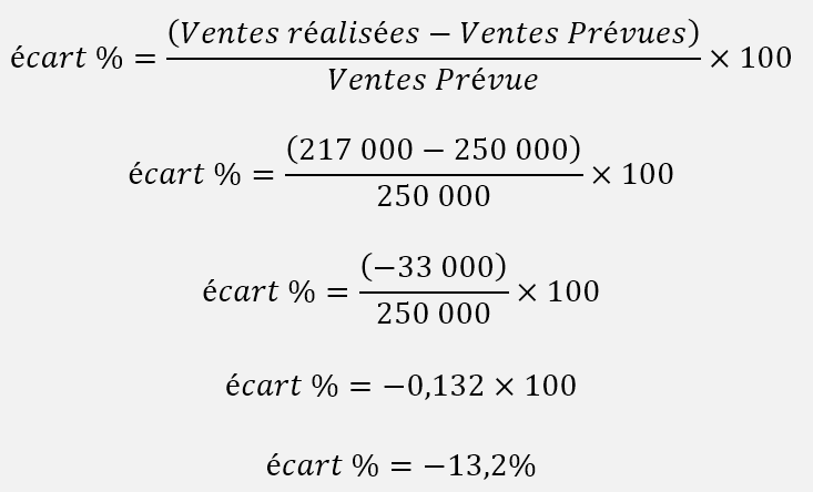 - L’écart négatif signifie ici que l’objectif des ventes annoncé n’a pas été